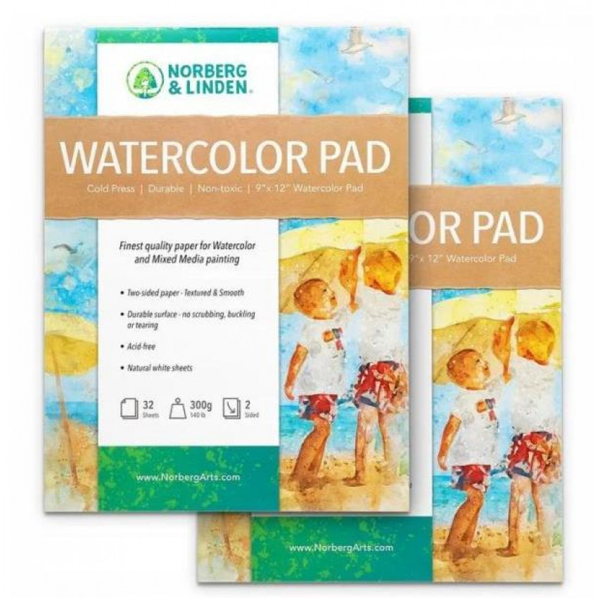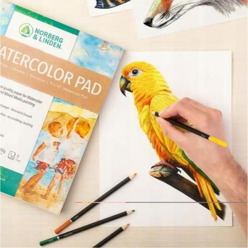 64 listov akvarelová podložka na maľovanie zmiešaných médií (2) - obálka 9x12 listov - obojstranný papier, ideálny na maľovanie, vyfarbovanie, skicovanie, papier s ideálnou textúrou na zdokonalenie rôznych techník kresby 2 ks x 32 str. x 300 g