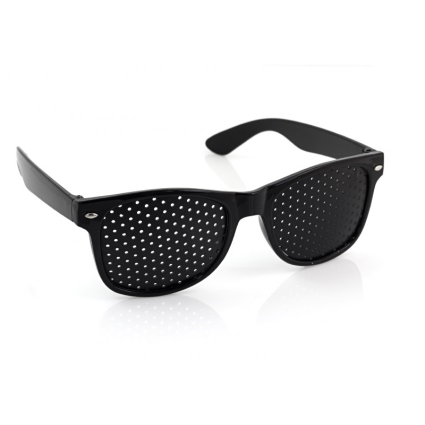 Vyskúšajte špeciálne ajurvedské dierkované okuliare, ktoré prinútia Vaše očné svaly k neustálej aktivite. Okuliare majú namiesto klasickej šošovky plochu z umelohmotného materiálu, v ktorej sú desiatky dierok v tvare mikrokužeľov. Tie nútia očné svaly, aby aktívne zaostrovali a vyhľadávali optimálnu polohu na pozorovanie jednotlivých predmetov.