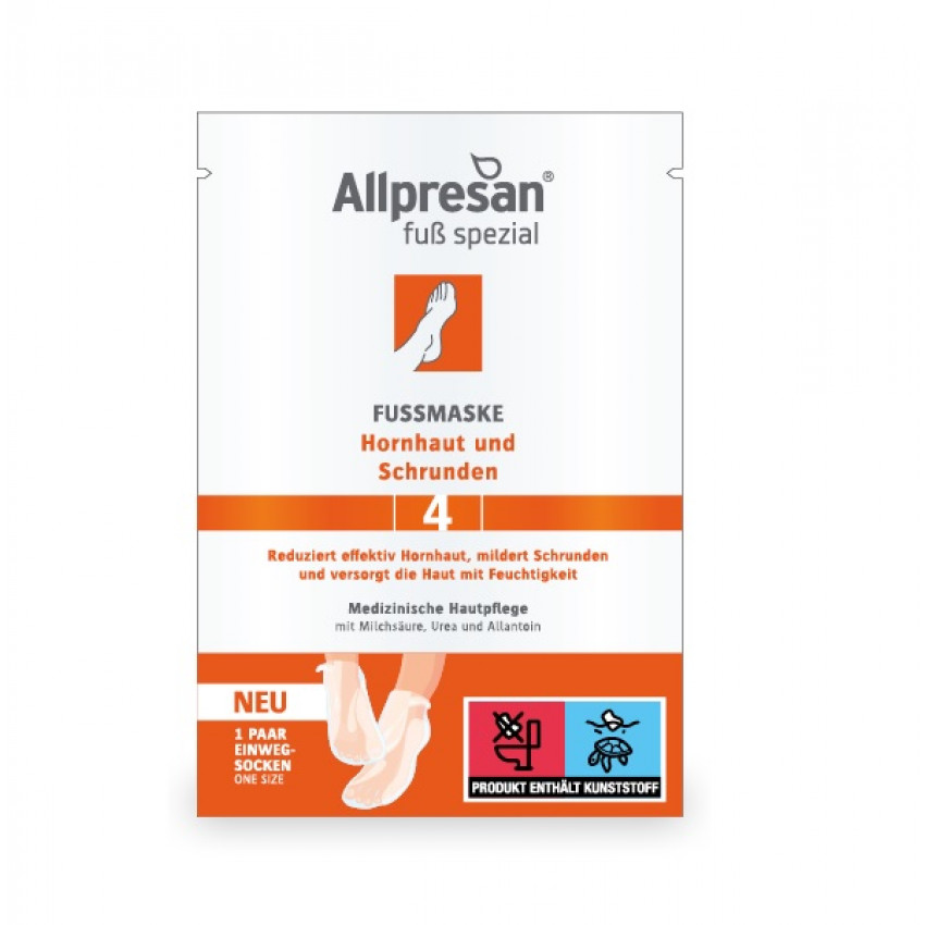 Prinášame vám Allpresan® Intenzívnu regeneračnú masku na nohy, špeciálne vytvorenú pre rýchle a efektívne zmiernenie zrohovatenej a popraskanej pokožky nôh. Táto maska, vďaka jedinečnej kombinácii kyseliny mliečnej a urey, účinne redukuje tvrdú pokožku. Prírodné extrakty z hamamelu a alantoínu poskytujú hĺbkové upokojenie a výživu. Toto je ideálne riešenie pre každého, kto túži po hladkých a hebkých chodidlách.