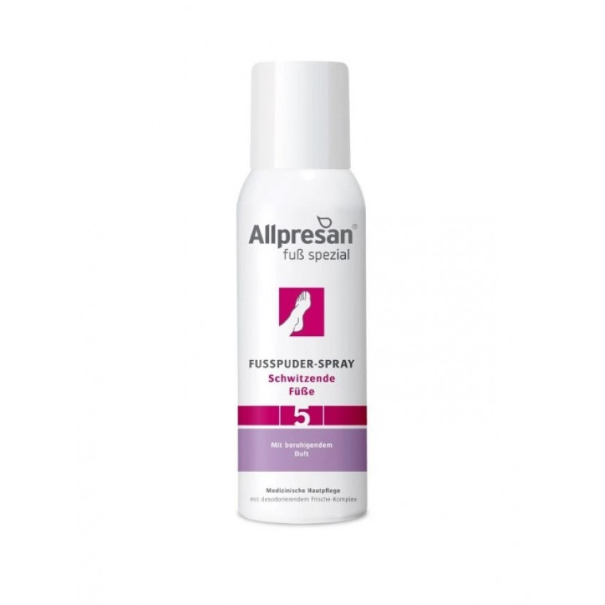 Allpresan® PediCARE Pudrový sprej na nohy 125ml je revolučným riešením pre účinnú starostlivosť o vaše nohy. Tento jedinečný sprej kombinuje blahodarné účinky pudrových častíc s ošetrujúcimi vlastnosťami, čím poskytuje okamžitú úľavu od nepohodlia spojeného s vlhkými a podráždenými nohami.