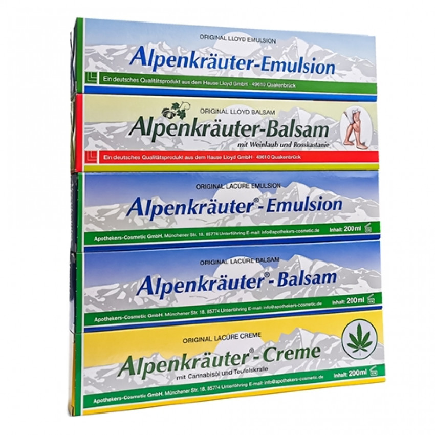 Alpenkräuter emulsion je bylinný krém, ktorý obsahuje výťažky z borovice, rozmarínu šalvie, citrónu. Vhodný je na masáže celého tela po aktívnom športovaní. Masážou sa uvoľňuje bolesť kĺbov, stuhnuté svaly a bolesti hlavy. Alpská bylinková emulzia je vysoko kvalitný produkt z alpských byliniek a éterických olejov.
