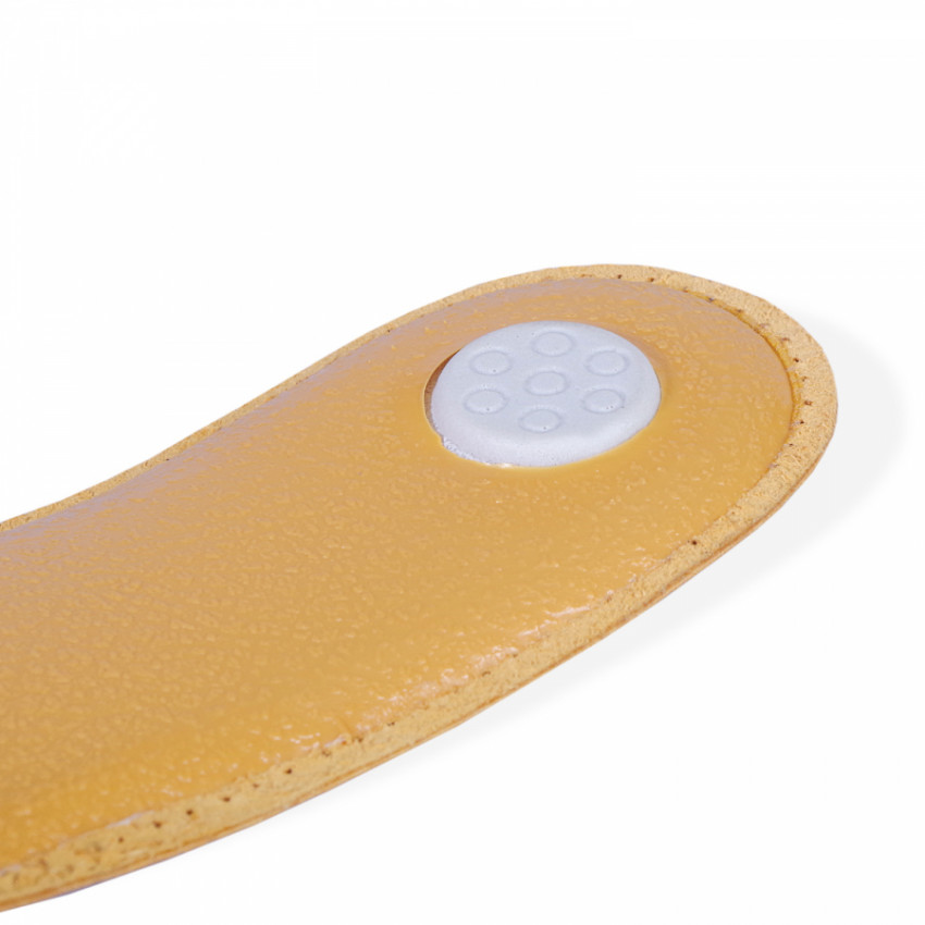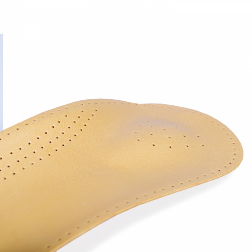 Perforovaná prírodná koža ľahko absorbuje pot vylučovaný chodidlami a udržuje ich svieže a hygienické po dlhšiu dobu. Profilovaný prvok stabilizuje chodidlo a podporuje pozdĺžnu klenbu, čím znižuje únavu chodidla, čo je dôležité najmä pri dlhom státí a chôdzi. Tvarovanie vložiek vedie k priaznivej zmene rozloženia tlaku chodidla na zem. Tlmič nárazov umiestnený v zadnej časti vložky čiastočne tlmí mikronárazy vznikajúce pri dotyku päty so zemou v prvej fáze chôdze.