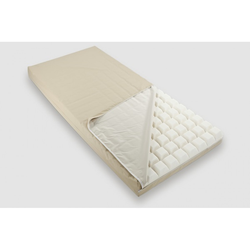 Matrac typu Gofer - maximálne zaťaženie 100 kg. Špeciálny dizajn matraca vo forme zárezov spôsobuje nepretržité prúdenie vzduchu medzi telom a matracom, ochladzuje ho a zabraňuje tvorbe preležanín. Vďaka použití špongie s primeranou pružnosťou sa matrac automaticky a individuálne prispôsobí užívateľovi v ľahu, pričom rovnomerne rozloží váhu tela pri zachovaní prirodzeného zakrivenia chrbtice. Nezhoršuje dýchacie, obehové a tráviace funkcie.