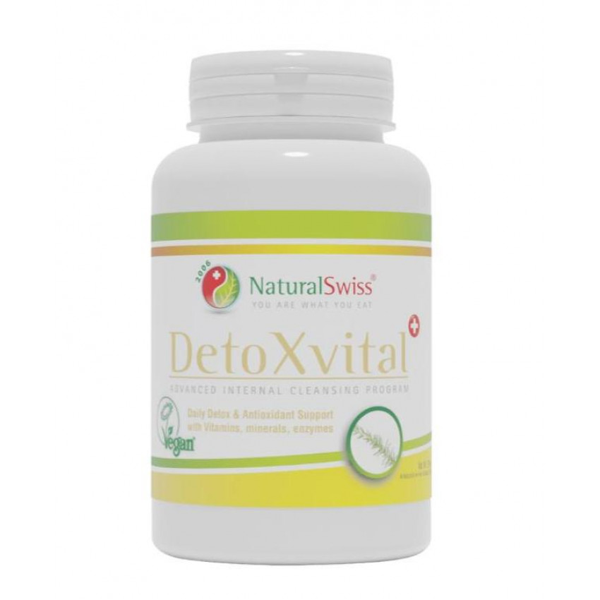 Detox Vital obsahuje profesionálne vyberané živiny, aminokyseliny, enzýmy, minerálne látky a vitamíny, ktoré podporujú dlhodobé udržanie zdravia. Neobsahuje železo, takže pacienti trpiaci ochorením koronárnych ciev a črevnými ochoreniami ho môžu bezpečne užívať denne, hoci aj dlhodobo. Jeho účinné látky nezaťažujú zbytočne organizmus a môžu ho konzumovať aj osoby dodržiavajúce vegetariánsku a vegánsku stravu. Ďalej neobsahuje sóju, kukuricu, cukor, vajcia, mlieko, konzervačné látky a farbivá. Škodlivé toxické látky nachádzajúce sa v organizme odčerpávajú minerálne látky a vitamíny, ktoré sú dôležité pre život. V dôsledku toho organizmus dokáže horšie odolávať, imunitný systém je oslabený. Vplyvom toxických látok a ťažkých kovov sa vytvárajú v organizme extrémne škodlivé molekuly a voľné radikály. Ich vplyvom sa poškodzujú tkanivá a bunkové steny. Antioxidanty, ktoré organizmu potrebuje na dennej báze, sú mimoriadne vhodné na prekonanie a znižovanie počtu voľných radikálov. Detox Vital s komplexným zložením obsahuje také základné živiny, akými sú napríklad vitamíny C, K, E, D a B. Pridané rastlinné zložky vysokej kvality, ako je napríklad riasa spirulina, ananásový prášok, pšeničná tráva, ženšen a extrakt zo zeleného čaju, vzájomným prospešným pôsobením zvyšujú antioxidačný účinok. Užívanie prípravku odporúčame osobám s aktívnym životným štýlom, športovcom, osobám, ktoré trpia problémami s pečeňou a žlčníkom, ako aj osobám, ktoré majú záujem doplniť si vyčerpané živiny a vitamíny po očiste čriev. Detox Vital sa odporúča na dlhodobé užívanie, s každodennou pravidelnosťou. Možno ho doplniť aj produktom ToXiClean, alebo inými produktami NaturalSwiss.