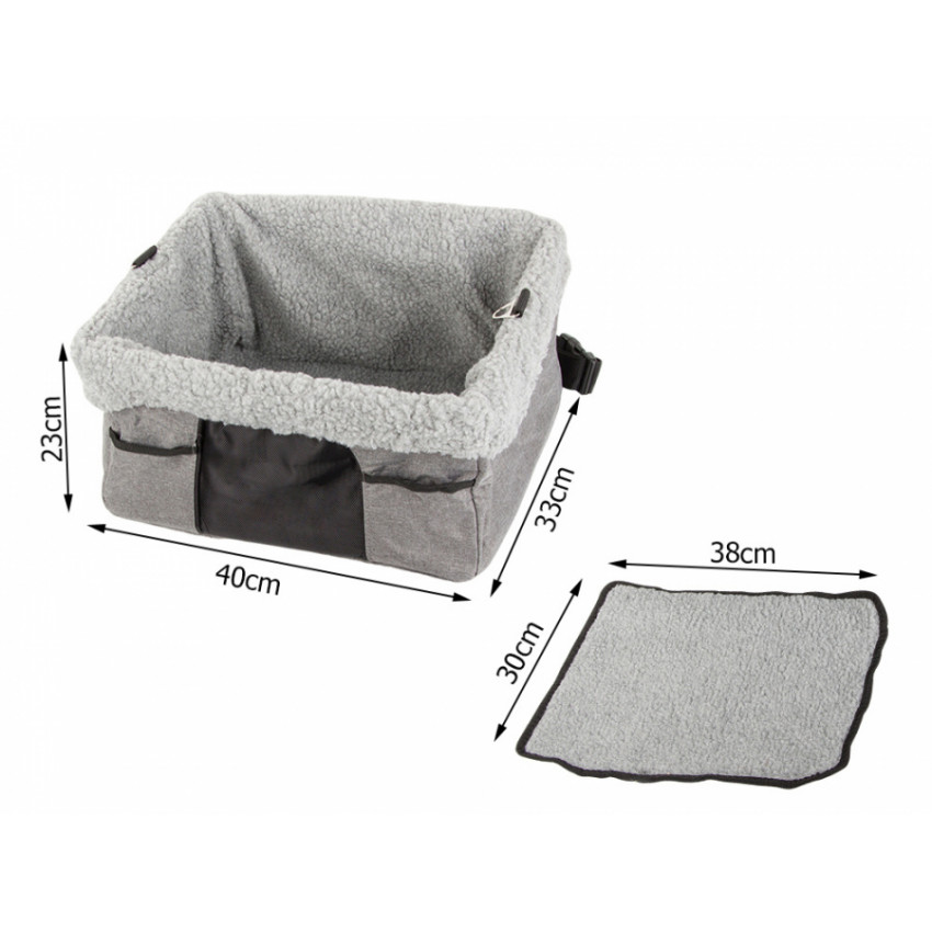 Vyrobené z kvalitných materiálov, má vnútro vystlané mäkkou kožušinkou, kde sa bude váš miláčik cítiť príjemne a bezpečne. Nosič má na bokoch dve veľké vrecká zapínané na suchý zips, schováte do nich doplnky vášho psíka. Má tiež dve ďalšie menšie vrecká na prednej strane. Jednoduchá inštalácia pre rýchlu a efektívnu inštaláciu do auta. Má opasok na prenášanie nosiča a vnútorný háčik na vodítko pre väčšiu bezpečnosť.