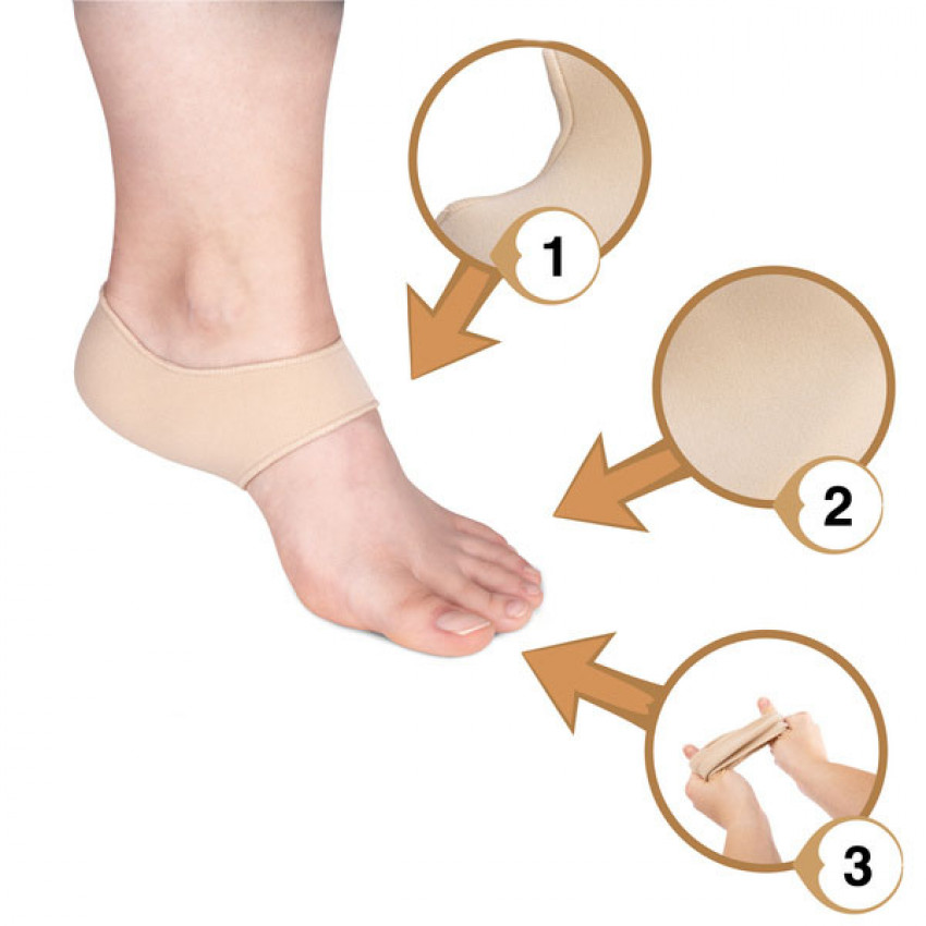 Bandáž jednoducho nasadíte na chodidlo tak, aby bola pohodlne a pevne umiestnená na pätovom mieste.