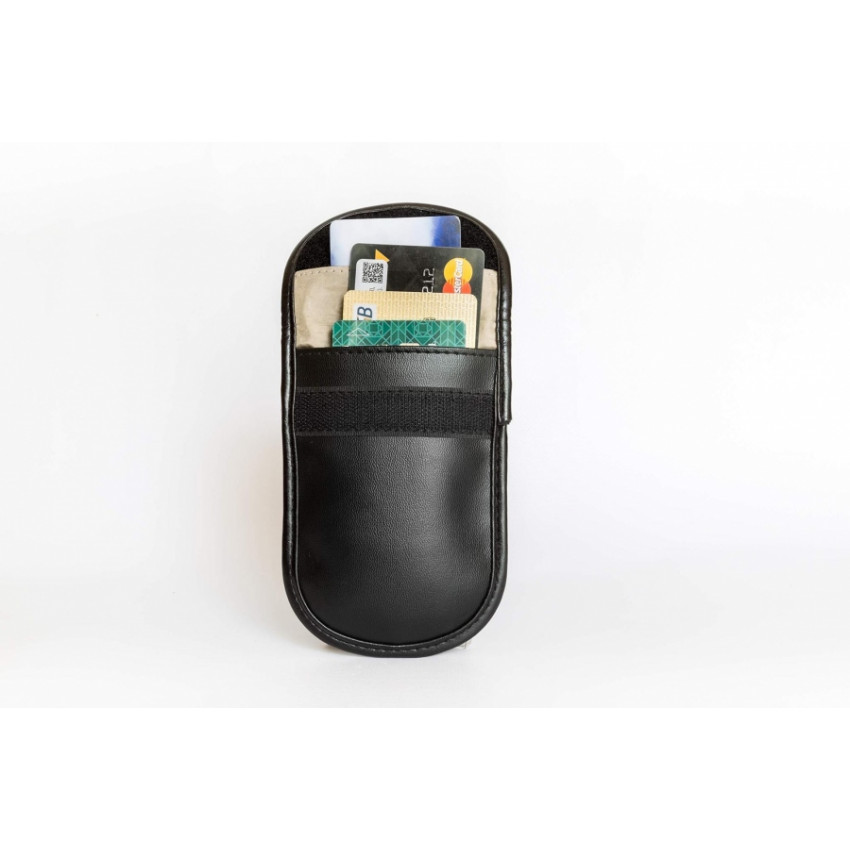 Najjednoduchší spôsob ako ochrániť svoje zariadenie pred odpočúvaním, sú puzdra, ktoré blokujú bezdrôtový signál. Stačí, ak svoje zariadenie vložíte do puzdra a máte istotu, že sa k Vášmu mobilu, alebo inému zaradeniu nikto nedostane. Všetky volania na Váš mobil sú v momente, keď je v puzdre blokované. Vďaka tomu, že vnútro puzdra je potiahnuté sieťkou z nano-materiálov. Tento materiál pohlcuje VF a magnetické žiarenie. Spoľahnúť sa taktiež môžete aj na atenulátor s intenzitou 90 dB, čo zaručuje 99,9% účinnosť. Okrem toto, že toto puzdro dokonale ochráni Vaše elektronické zariadenia (okrem mobilov aj GPS, digitálne fotoaparáty, externé pamäte a iné elektronické zariadenia), ochráni aj Vaše doklady pred zneužitím. Málokto totižto vie, že aj bankomatové karty sú veľmi náchylné na zneužitie a taktiež napríklad Váš cestovný pas sa dá veľmi jednoducho vymazať. Ak však Vaše doklady odložíte do tohto puzdra, nič takéto Vám nehrozí.