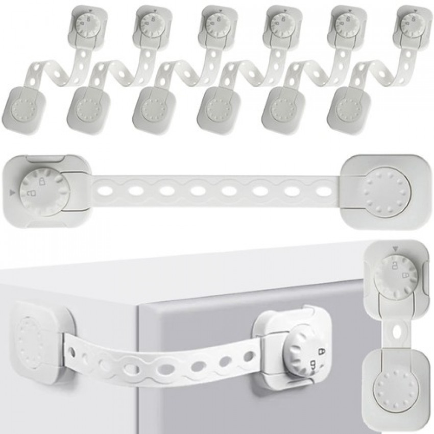 Najväčšou výhodou týchto zábran je gombík so zámkom. Ak chcete zámok otvoriť, otočte gombík na značku otvoreného zámku. Ak chcete zámok zatvoriť, otočte ho na značku zatvoreného zámku. Zábrany sú dĺžkovo nastaviteľné, čo umožňuje ich prispôsobenie rôznym veľkostiam skriniek. Stačí otvoriť zámok, odrezať na požadovanú dĺžku, pripevniť zvyšok a zavrieť zámok.