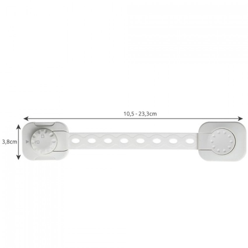 Chráni nielen malé prsty pred náhodným privretím. Je to tiež ideálny spôsob, ako zabrániť otváraniu nábytku obsahujúceho predmety nebezpečné pre dieťa - napríklad zásuvky s nožmi. Zámok sa neotvorí bez otočenia správnym spôsobom, čím zostane obsah skrinky/zásuvky v bezpečí.