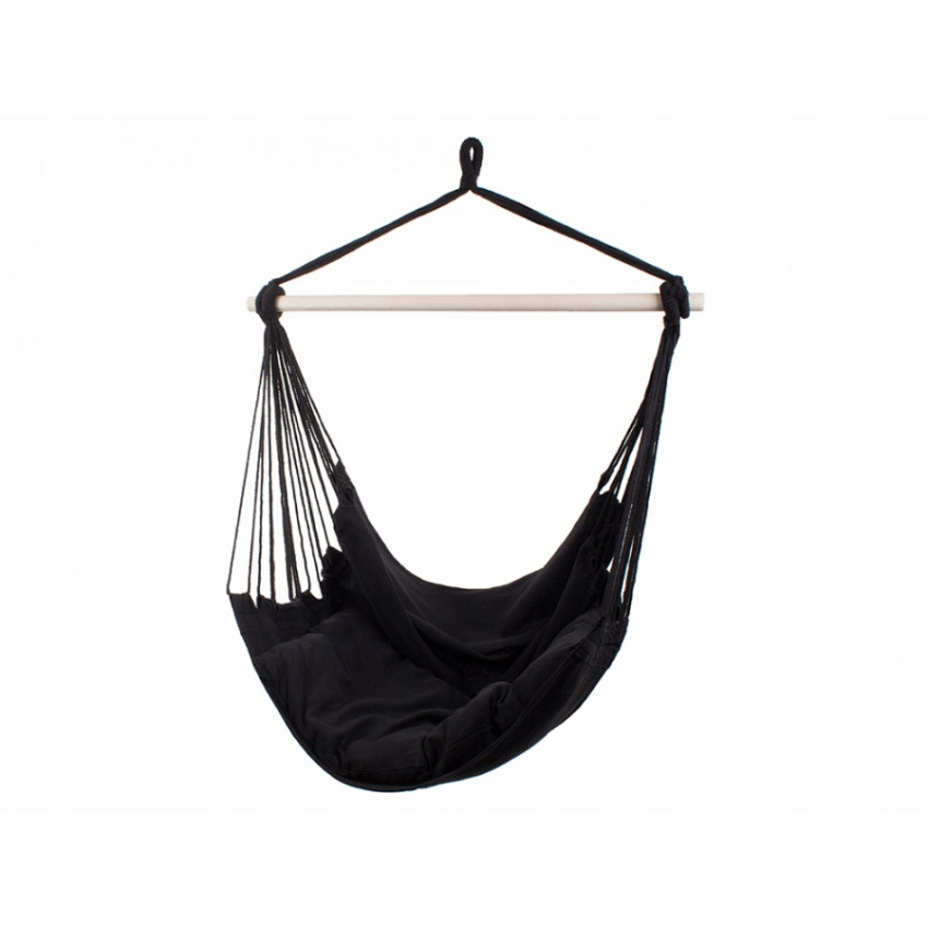 Je vyrobené z odolného materiálu, rovnako ako husto spletené laná. To všetko robí hojdacie kreslo odolným a priedušným, vďaka čomu je jeho používanie veľmi príjemné. Hojdacie kreslo je zavesené na dlhom drevenom ráme, ktorý spevňuje konštrukciu a zabraňuje jej krúteniu, zlepšuje stabilitu a bezpečnosť.