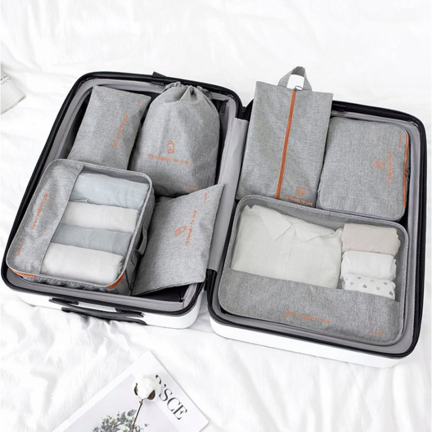 Sada sa skladá zo 7 tašiek, ktoré vám pomôžu udržať poriadok v kufri a hotelovej izbe. Šesť organizérov rôznych veľkostí, kapacít a účelov vám uľahčí dovolenku. Organizéry vám umožnia samostatne triediť a baliť spodnú bielizeň, obuv, kozmetiku či káble a nabíjačky. Vďaka nim si do cestovnej tašky zbalíte pár topánok navyše a nezašpiníte si nimi kufor ani iné oblečenie!