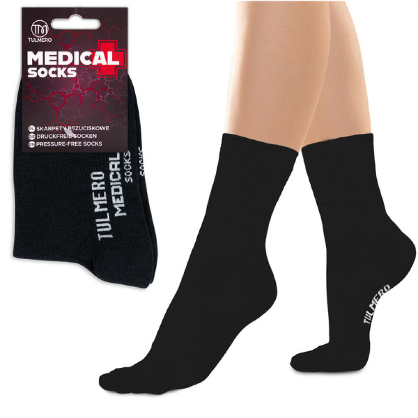 Beztlakové ponožky Tulmero Medical slúžia na znižovanie tlaku na chodidlá a lýtka. Umožňujú voľný prietok krvi a zabraňujú tlaku na citlivé oblasti chodidiel. Vďaka tomu môžu byť obzvlášť prospešné pre ľudí s citlivými nohami, opuchmi, žilovou nedostatočnosťou alebo inými cievnymi ochoreniami.