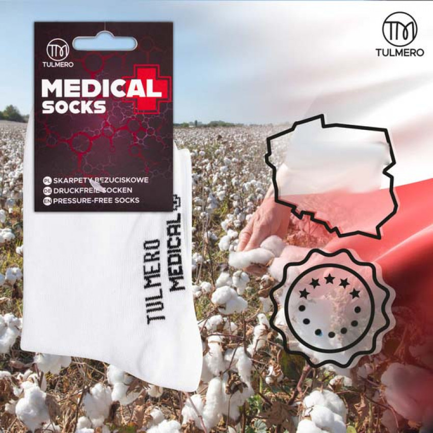 Beztlakové ponožky Tulmero Medical sú určené tak, aby znižovali tlak na chodidlá a lýtka. Umožňujú voľný prietok krvi a zabraňujú tlaku na citlivé oblasti chodidiel. Vďaka tomu môžu byť obzvlášť prospešné pre ľudí s citlivými nohami, opuchmi, žilovou nedostatočnosťou alebo inými cievnymi ochoreniami.