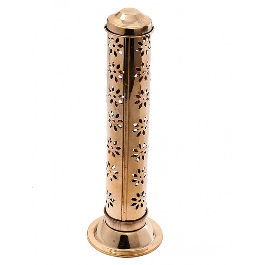 Zažite pokoj a harmóniu s týmto praktickým riešením pre váš duchovný rituál. Vyrobený z kvalitnej mosadze s lesklým zlatým povrchom, vyniká unikátnou valcovou vežou s marockým vzorom perforácií, cez ktoré jemne uniká vonný dym.
