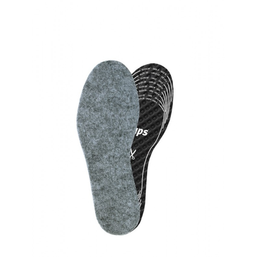 Pohodlné detské zimné strihacie stielky sú vyrobené z kvalitnej polyesterovej netkanej textílie a latexovej peny s aktívnym uhlím, ktorá absorbuje nepríjemné pachy. Pri nízkych teplotách chránia chodidlá pred chladom pri dlhodobom státí, ako aj pri chôdzi. Izolujú od tvrdého a studeného podkladu a spodná vrstva vo forme latexovej peny bráni stielke posúvaniu v obuvi. Zvyšujú komfort a tepelnoizolačné vlastnosti celoročnej, zimnej a domácej obuvi. Možnosť ručného prania pri teplote 30°C.