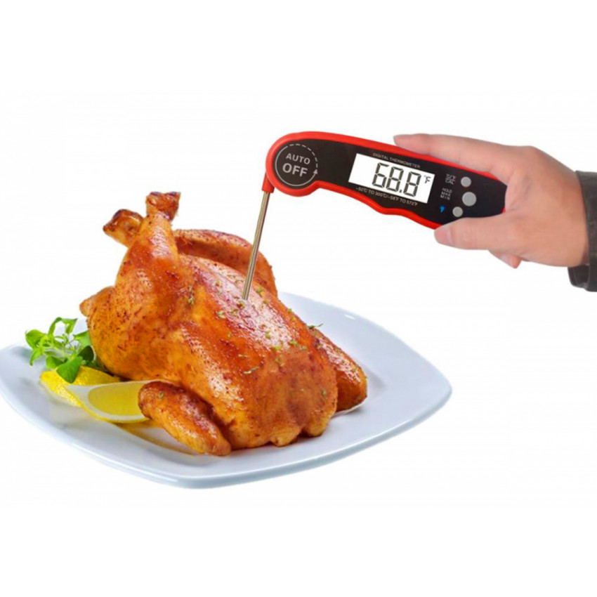 Elektronický vodotesný kolíkový teplomer s 11,6 cm žiaruvzdornou sondou. Je ideálny na meranie teploty vo vnútri pripravovaného jedla. Prístroj má čitateľný, podsvietený LCD displej, ktorý uľahčuje čítanie meraní. Dlhá, žiaruvzdorná sonda umožňuje jednoduché vloženie do jedla a meranie teploty napríklad mäsa. Teplomer má množstvo užitočných funkcií, ako napríklad možnosť uloženia merania alebo prichytenia na magnet. Veľmi široký rozsah teplôt a vodeodolnosť IP67 z neho robí výbornú pomôcku, ktorá nám výrazne uľahčuje kontrolu teploty pečených jedál a kuchynských prác.