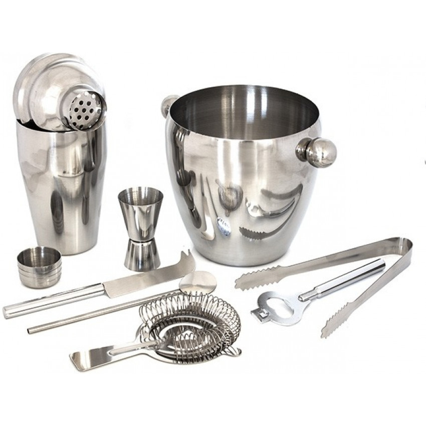 Bohato vybavený 8-dielny barový koktail set z nerezovej ocele.