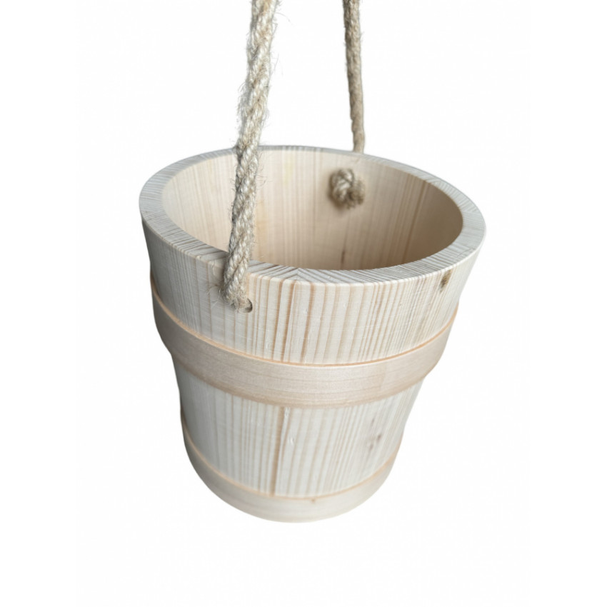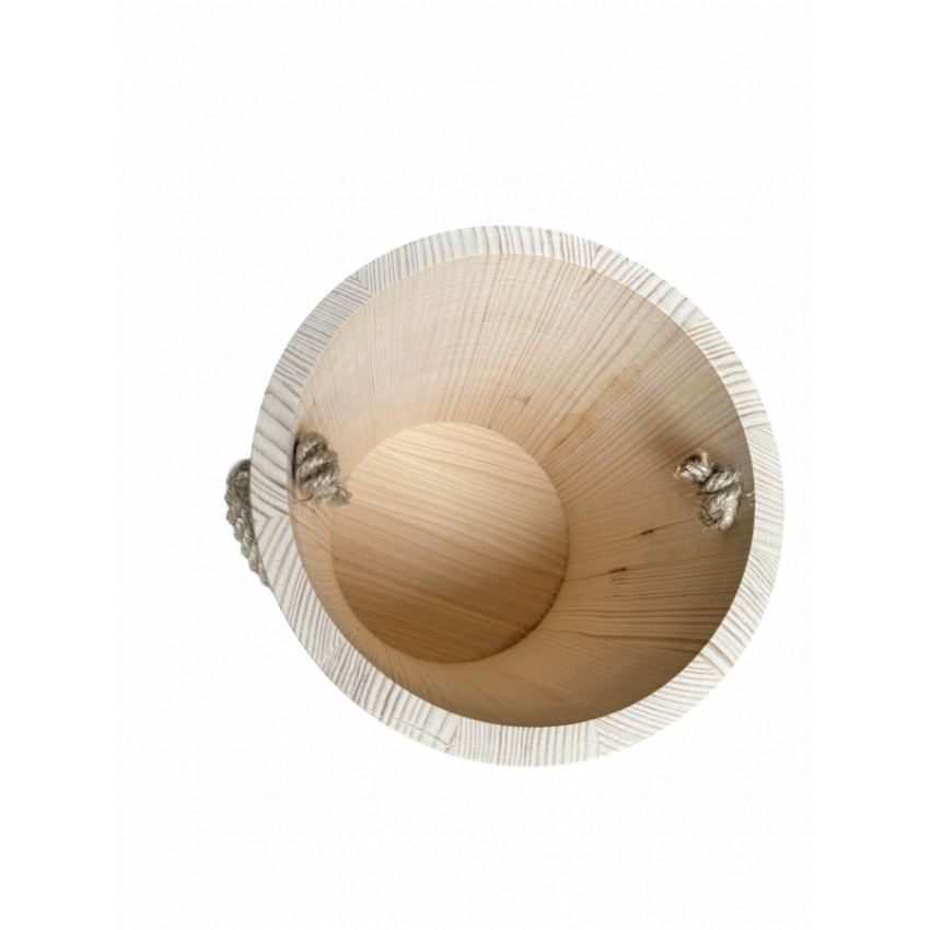 Toto vedro ponúka širokú škálu využití - od úložného priestoru na kuchynské potreby, ako sú varešky a príbory, až po dekoratívny prvok v interiéri. Jeho robustná konštrukcia z kvalitného dreva zabezpečuje dlhú životnosť a odolnosť voči opotrebeniu. Lanový úchyt pridáva na praktičnosti a umožňuje ľahké prenášanie.