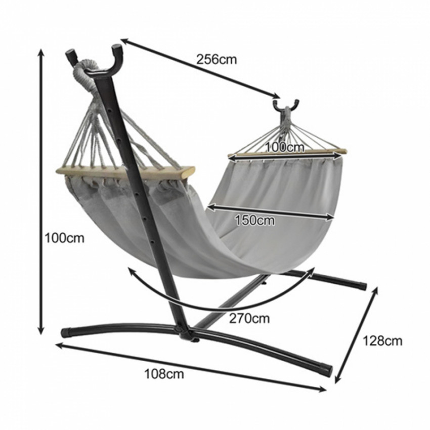 Vďaka pevnému žľabovému rámu z odolného kovu a priedušnému materiálu z bavlny a polyesteru poskytuje tento hamak maximálnu stabilitu a pohodlie pre dvoch ľudí.