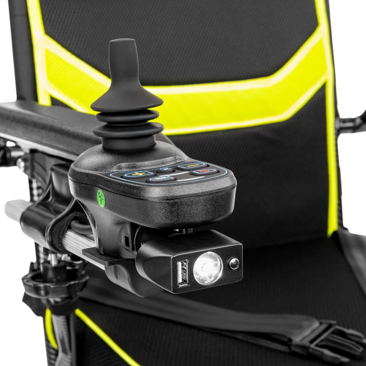 Tento skladací elektrický vozík je navrhnutý pre pohodlie a bezpečnosť používateľa. Ovládanie pomocou joysticku je intuitívne a presné, takže sa môžete ľahko pohybovať v interiéri aj exteriéri. Stabilná jazda je zabezpečená vďaka plným kolesám a elektromagnetickému brzdovému systému.