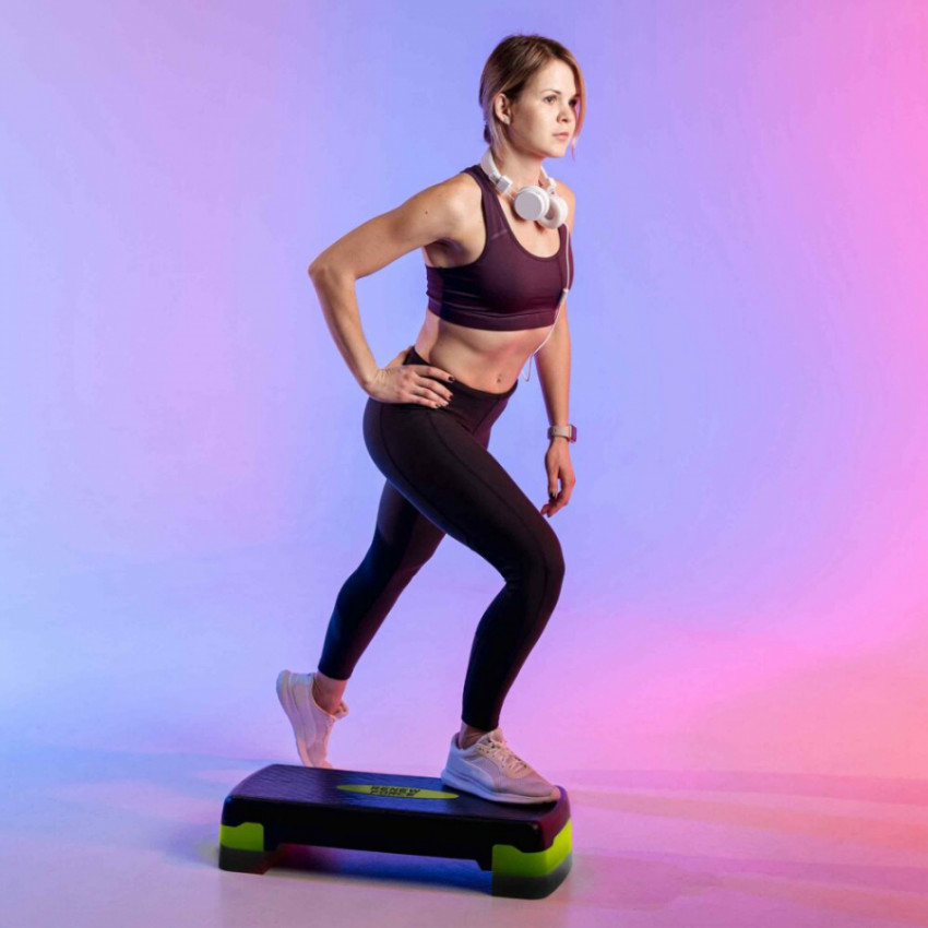 Ideálny pre aerobik a fitness tréningy, poskytuje 3-stupňovú reguláciu výšky a protišmykovú povrchovú úpravu pre bezpečný a efektívny tréning.