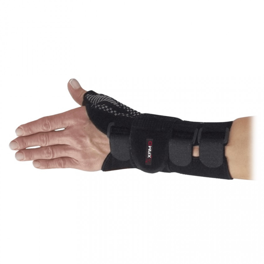 Stabilizuje a spevňuje zápästný kĺb, poskytuje podporu palcu a zaisťuje pohodlné nosenie. Vďaka nastaviteľnému zapínaniu sa dokonale prispôsobí anatomickému tvaru ruky.