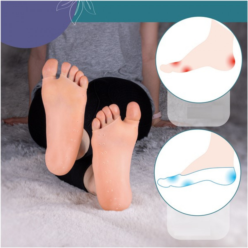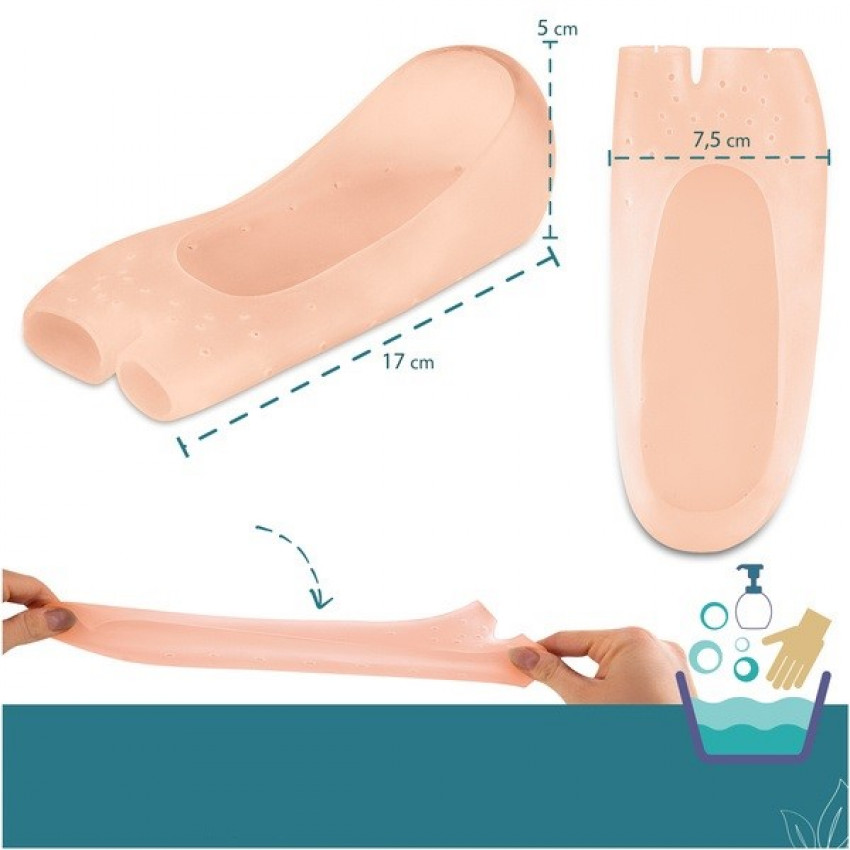 Ideálne pre tých, ktorí sa starajú o vzhľad svojej pokožky. Najlepšie je použiť ich na predtým navlhčené chodidlá, aby sa účinne obnovil estetický vzhľad pokožky. Vďaka nim sú suché a popraskané päty hladšie a zdravšie. Ľahká a priedušná konštrukcia návlekov bráni nadmernému poteniu nohy, čím sa predchádza odieraniu. Ponožky sú navyše veľmi príjemné na dotyk a nosenie.