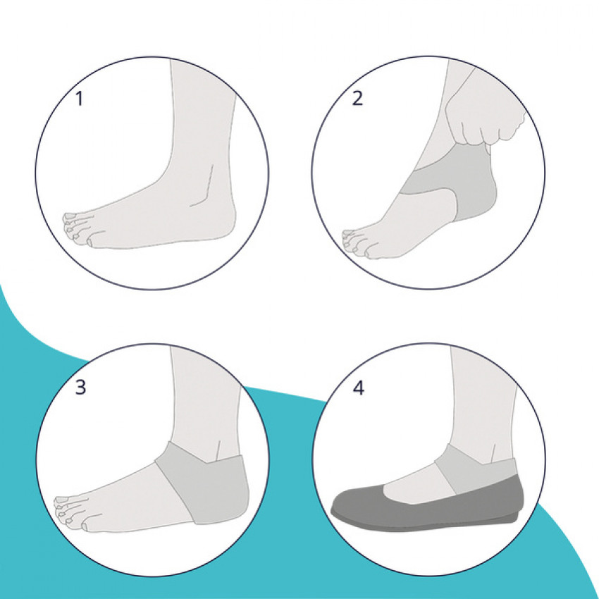Nasadzovanie je jednoduché. Stačí jemne pretiahnuť návlek cez pätu.