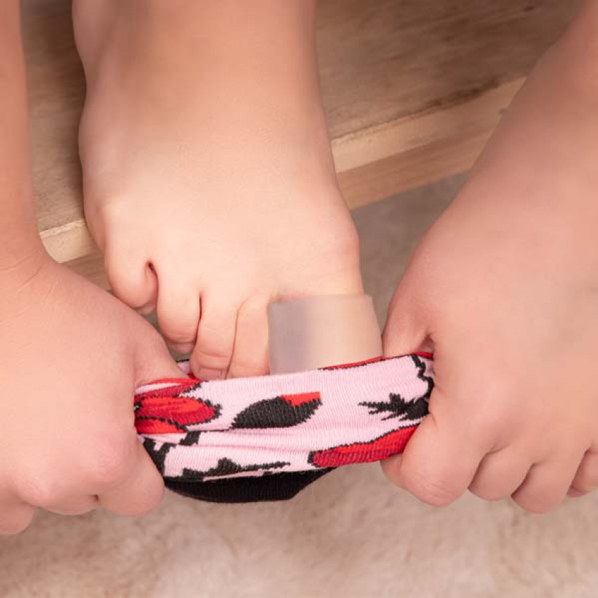 Separátor sa jednoducho nasadí medzi prsty na nohe, kde poskytuje podporu a pomáha udržiavať správne vyrovnanie prstov.