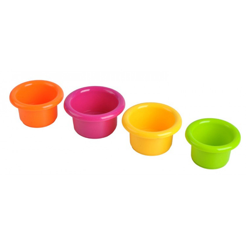 Sada obsahuje farebné hrnčeky s otvormi, s ktorými sa možno hrať pri nalievaní vody alebo pomáhať pri dopĺňaní nádržky na vodopád. Hračka je viacfarebná a farby sú intenzívne a výrazné, čo priťahuje pozornosť dieťaťa a povzbudzuje ho k aktívnej hre.