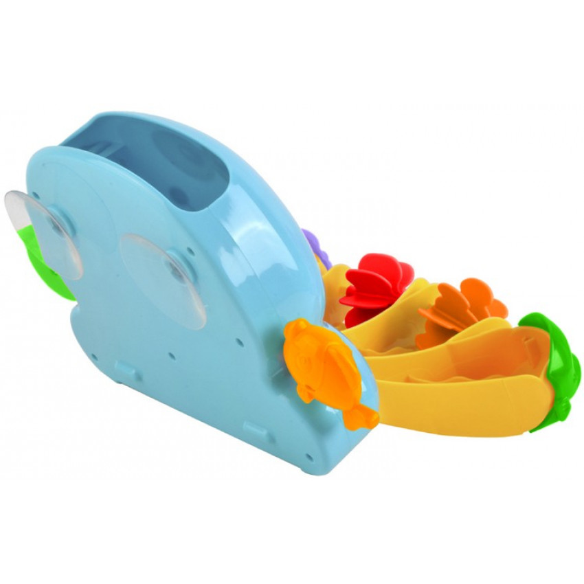 Nádrž na vodu v hornej časti vedie vodu do ústia a potom do malých žliabkov, ktoré ju prelievajú cez rotujúce vrtule alebo farebné postrekovače. Hračka je vybavená pevnými veľkými prísavkami, ktoré ju bez problémov udržia na stene sprchy, vane alebo na obklade či skle.