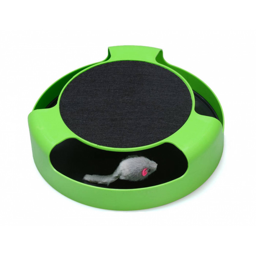 Hračka pre domáce mačky v podobe rotujúcej myši je skvelou alternatívou k lovu vo voľnej prírode. Určite zaujme obľúbeného člena rodiny a nebude sa s ním dlho nudiť. Hračka je vhodná pre všetky domáce mačky bez ohľadu na ich vek, pohlavie a veľkosť. Na vrchnej podložke môžu sedieť malé mačičky. Je okrúhleho tvaru a má 3 otvory. Otvory sú dostatočne veľké, aby sa do nich zmestili mačacie nohy akejkoľvek veľkosti. Vo vnútri sa nachádza imitácia myši, ktorá sa po údere labkou uvedie do pohybu a krúti sa po obvode kruhu, čím mačku nabáda k ďalšiemu hraniu.