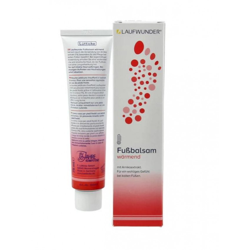 Laufwunder hrejivý balzam je určený na báze kozmetických surovín, ktoré sú vhodné pre pokožku, ktorá potrebuje efektívnu starostlivosť. Pomocou arnikového extraktu (1%) je Laufwunder hrejivý krém obzvlášť vhodný pre nohy s poruchou mikrocirkulácie krvi, v dôsledku ktorej sú nohy neustále chladné. Rovnako je veľmi vhodný pre ekzematikov a psoriatikov v kľudových štádiách týchto ochorení. Zanecháva pokožku hebkú a vláčnu bez pocitu mastnoty. Má dezodoračný účinok. Pri pravidelnom používaní sa dosiahnete hodvábne hladkú pokožku s dlhotrvajúcim účinkom.