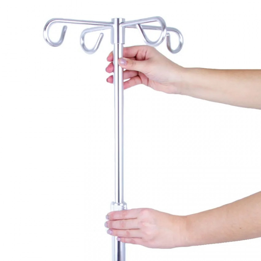 Infúzny stojan na kolieskach uľahčuje podávanie intravenóznych tekutín a zároveň umožňuje pacientovi byť počas podávania liekov mobilným.Stojan na podávanie infúzií je pojazdný na kolieskach a disponuje štyrmi závesnými háčikmi.