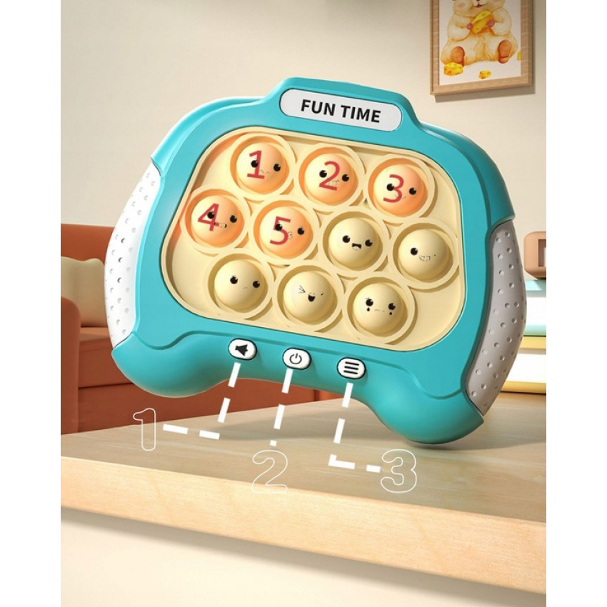 Pop it je vyrobený z materiálov bezpečných pre deti, ktoré zaisťujú bezpečnú a trvalú hru. Môžete si byť istí, že vaše dieťa sa bude hrať s produktom najvyššej kvality. Hračka Pop it zahŕňa stláčanie softvérových tlačidiel v správnom poradí a v správnom čase. Vizuálne signály naznačujú správne poradie. Ak stlačíte správne celú sériu, prejdete na ďalšiu úroveň, čo znamená, že zábava vaše dieťa tak rýchlo neomrzí. Ako sa úrovne zvyšujú, počet rozsvietených svetiel a časový limit pre každú úroveň sa zníži. Ak svetlá nezhasnú v určenom čase a stlačíte potvrdzovacie tlačidlo, hra zlyhá a vráti sa do pôvodného stavu a čaká na reštart.