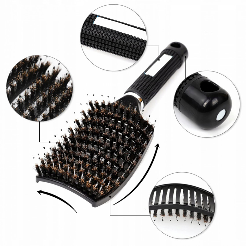 Prírodné diviačie štetiny použité v našej kefe dodajú vášmu účesu lesk a vyhladia povrch vlasov - uzatvárajú vlasovú kutikulu a tým sú vaše vlasy menej vystavené nepriaznivým vonkajším faktorom. Diviačie vlasy sú postavené rovnako ako ľudské vlasy, teda z kreatínu. Dizajn kefy okrem rozčesania dôkladne rozloží kožný maz po celej ploche vlasov – vďaka čomu sa vlasy menej mastia.