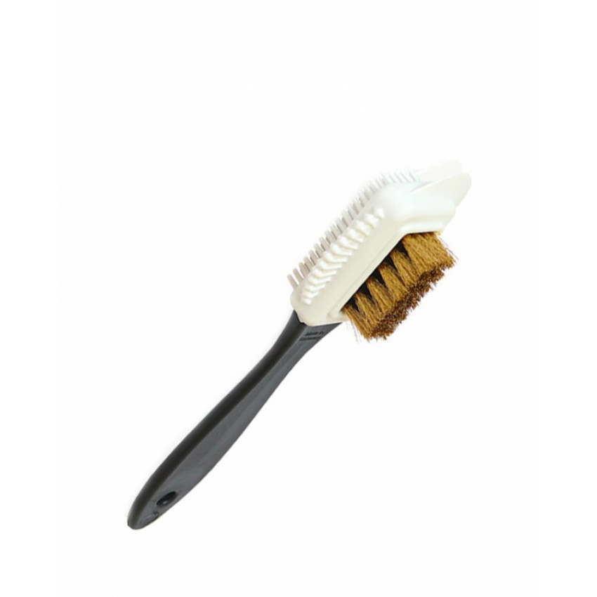 Mosadzný vlas tejto kefy je šetrný k semišu a ideálny pre čistenie obuvi. Na hlave nájdete rôzne výstupky, ktoré efektívne odstraňujú kamienky a hlinu z podrážky.