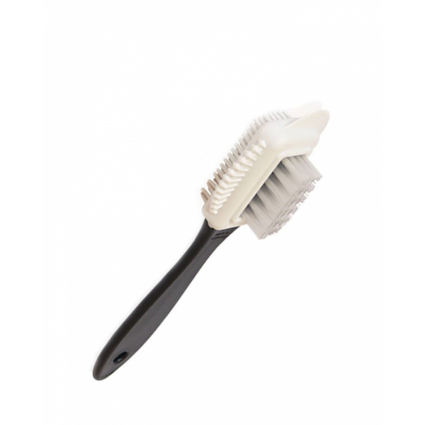 Šetrné čistenie nubukovej obuvi zabezpečí nylónový vlas, ktorý je súčasťou tejto kefy. Okrem toho obsahuje rôzne výstupky na vyčistenie podrážky od kamienkov a hliny.