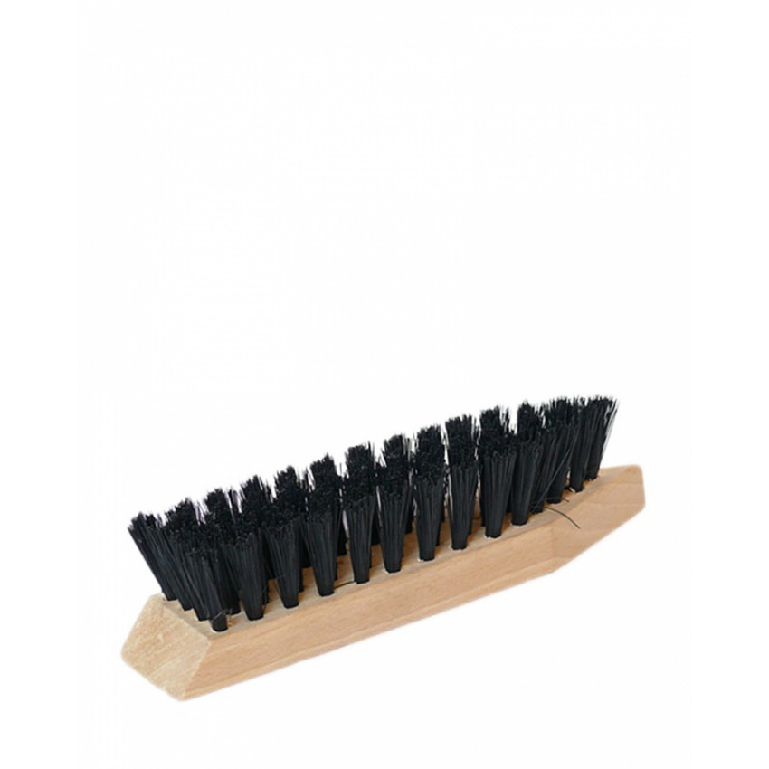 Kvalitná kefa na čistenie obuvi a galantérie, vyrobená z PVC vlasov s jemnou štruktúrou, 100% bezpečná pre všetky druhy usní. Štetiny sú vsadené do elegantnej drevenej rukoväte.