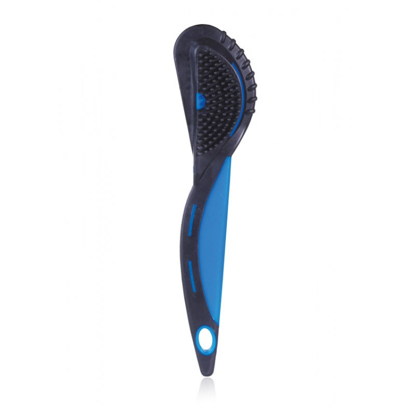 Kefka na semiš a nubuk ergonomická, určená na čistenie a ošetrovanie obuvi vyrobenej zo semišu a nubuk. Vďaka svojmu tvaru sa kefka dostane dokonale do najneprístupnejších častí obuvi. Kaučuková časť kefy dokonale odstraňuje nečistoty na nubuku a na čistenie semišovej obuvi sa používajú medené a nylonové štetiny.