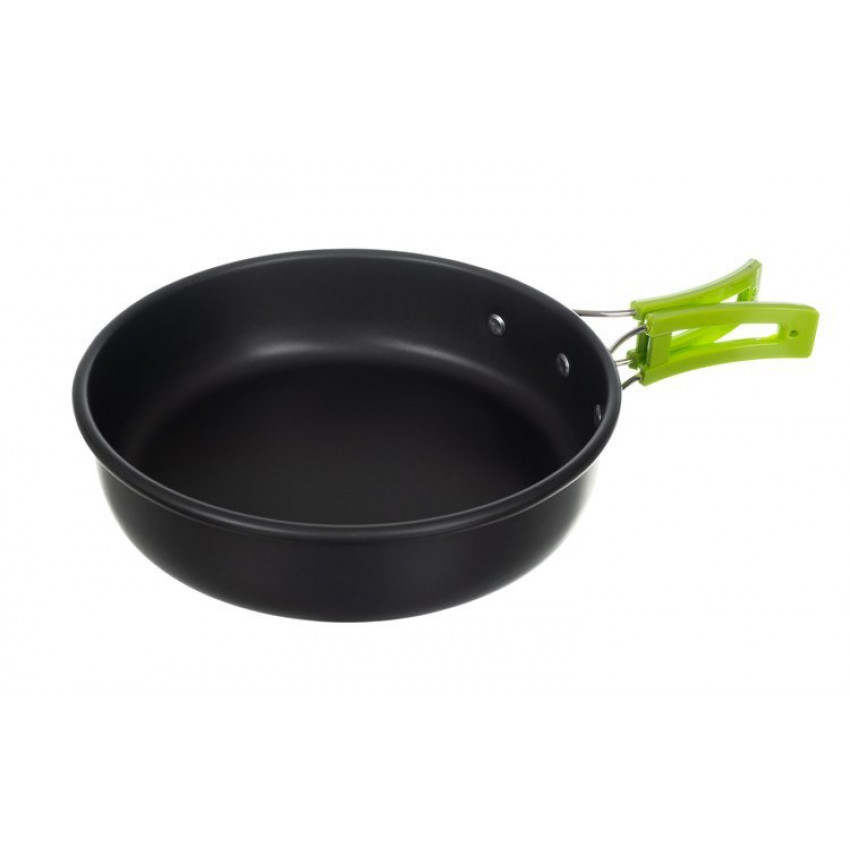 Ideálna pre kempovanie, táto sada prenosného kuchynského náradia je určená pre dve osoby a umožňuje jednoduché prenášanie vďaka skladacím rukovätiam. Obsahuje nepriľnavú vrstvu pre chutné a dokonale pripravené jedlo.