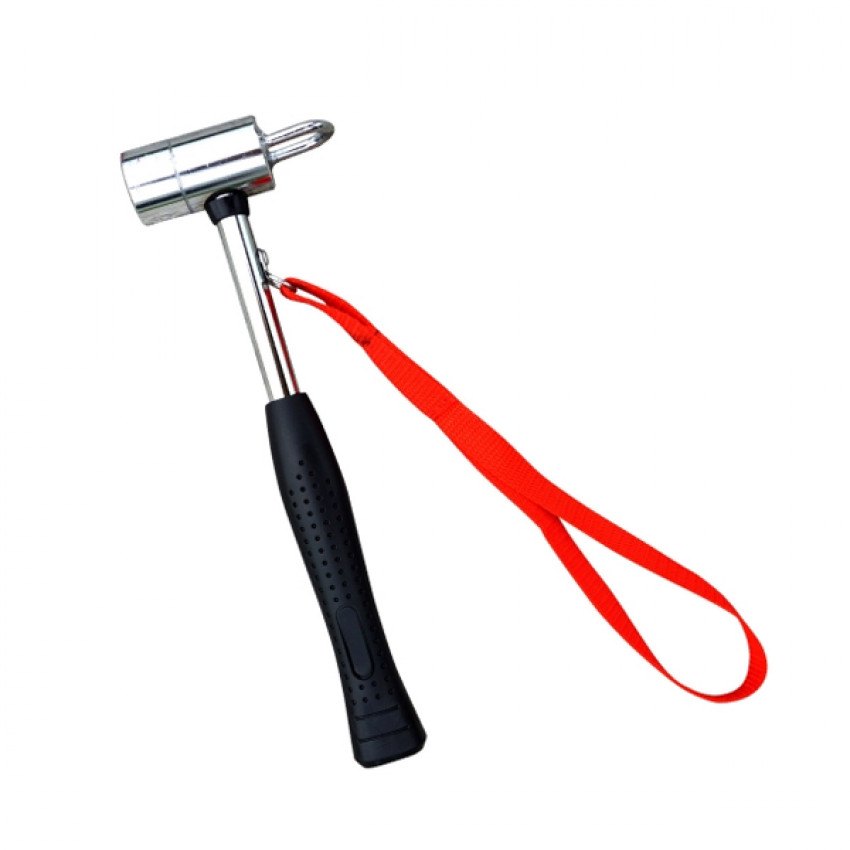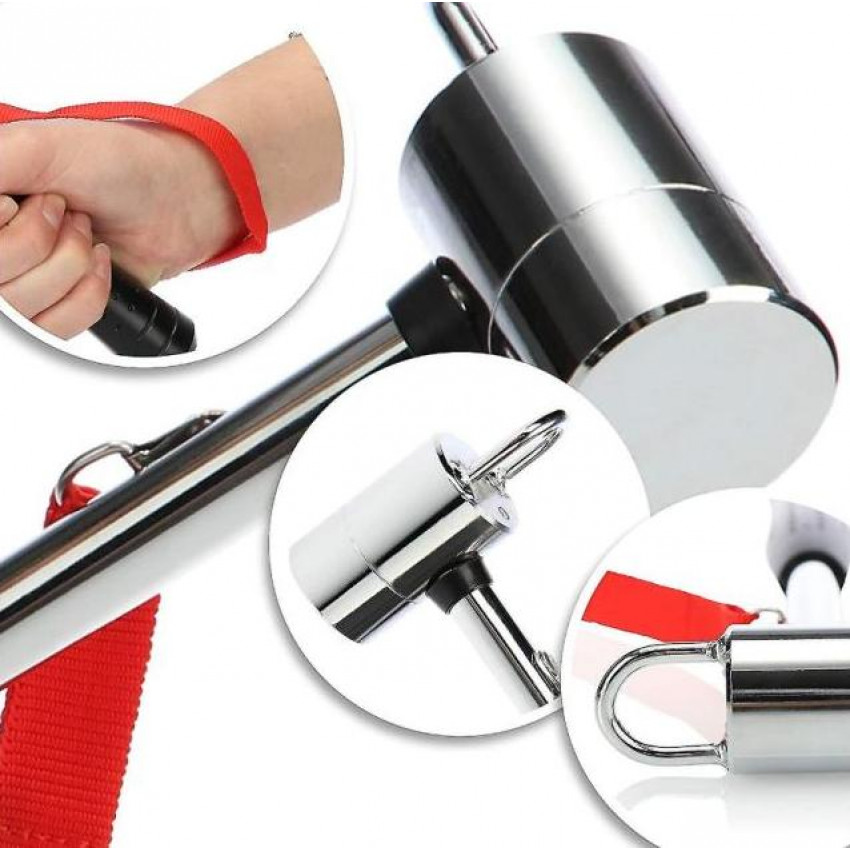 Remienok na zápästie zaisťuje ešte väčšiu bezpečnosť. Hlava kladiva je vyrobená z chrómovanej uhlíkovej ocele a je veľmi ťažká. Kolíky sa dajú ľahko zasunúť vďaka rozloženiu hmotnosti.