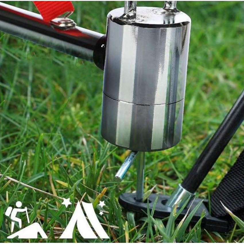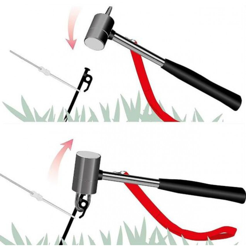 Kempingové kladivo je dokonalým kempingovým doplnkom. Ľahko zrazí kolíky do zeme a tiež ich ľahko vytiahne. Kladivo má očko, pomocou ktorého sa dajú zo zeme ľahko vytiahnuť aj tesné kolíky a prízemné kotvy. Pogumovaná rukoväť kempingového kladiva dokonale padne do ruky a zaisťuje pevné uchopenie.