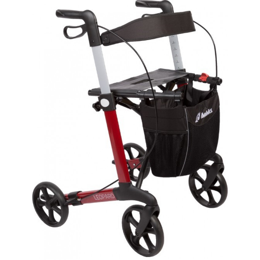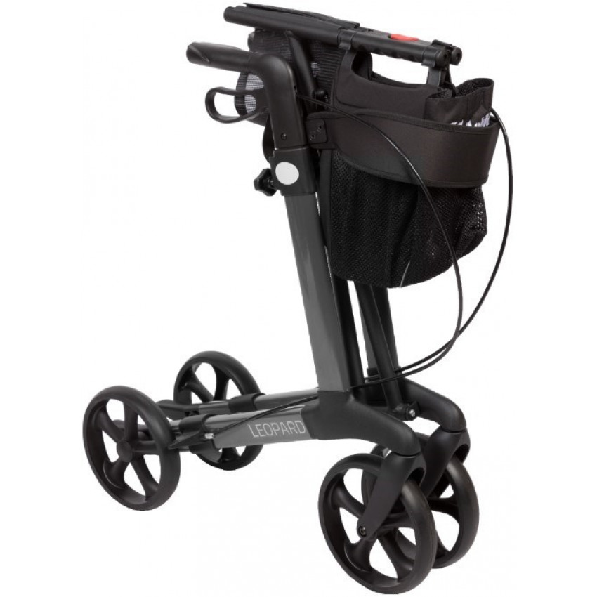 LEOPARD je moderné, krásne navrhnuté 4-kolesové chodítko pre najnáročnejších zákazníkov. Je vyrobené z hliníka a je ľahké (hmotnosť cca 7 kg). Zariadenie pomáha postihnutým osobám počas státia, sedenia alebo chôdze. Je šikovné, svižné a veľmi funkčné. Max. hmotnosť používateľa je 150 kg a do tašky je možné naložiť veci s hmotnosťou do 5 kg. Vďaka svojej konštrukcii s priečnym rámom sa Leopard ľahko zloží na skladovanie alebo prepravu. Leopard je vybavený mäkkým sedadlom, ktoré umožňuje užívateľovi odpočívať pri dlhších prechádzkach v parku alebo počas nakupovania. Má výškovo nastaviteľné držadlá pre optimálne prispôsobenie užívateľovi.