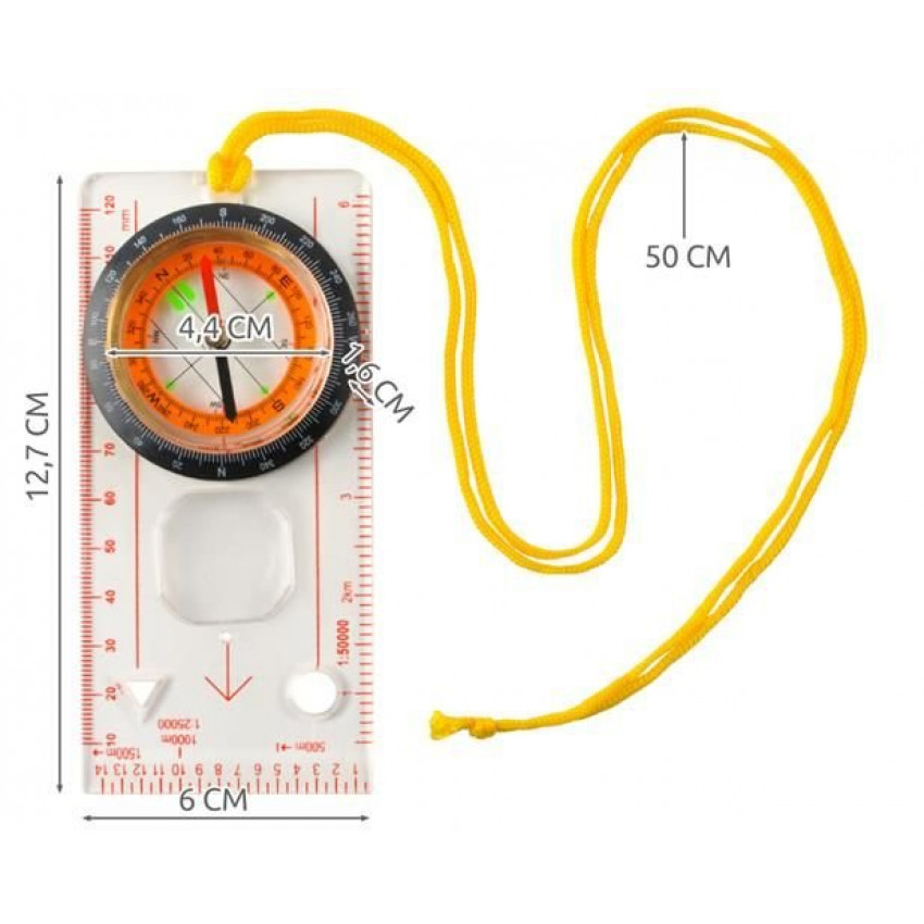 S týmto kompasom nikdy nestratíte tú správnu cestu. Má lupu, delené stupnice a pravítko. Ciferník je v rozsahu 360°. Dvojfarebné magnetické ihly sú umiestnené v nádobe s tekutinou, čo zaručuje presnosť čítania tým, že zabraňuje vibráciám - to je dôležité najmä vtedy, keď je potrebné určiť smer pri chôdzi alebo behu. Ihly a ciferník sú navyše označené fluorescenčnou farbou, ktorá umožňuje čítanie bez dodatočného zdroja svetla.