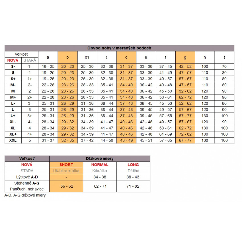 Veľkosť si vyberiete podľa veľkostnej tabuľky, ktorá je súčasťou produktu. Je dôležité zmerať si obvod členka a stehna.