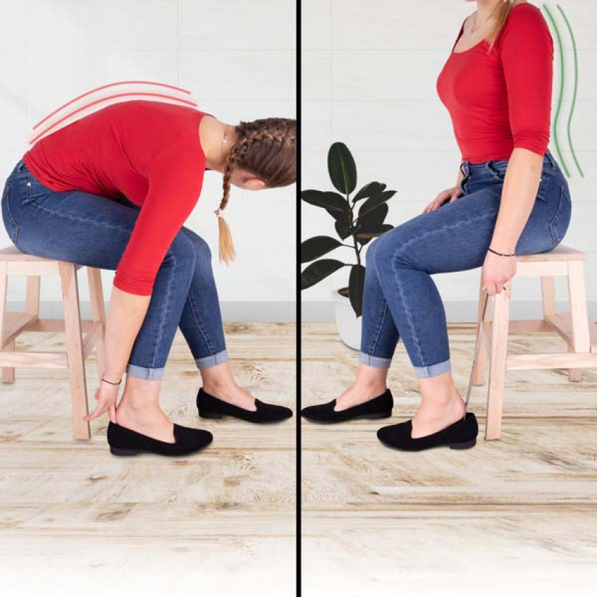 Vďaka pogumovanej vrchnej časti, ktorá zabezpečuje nesmekavosť, sa obuvák ľahko drží a poskytuje stabilnú podporu pri obúvaní topánok. Ideálny pre starších ľudí, tehotné ženy, deti a osoby s problémami s chrbticou.