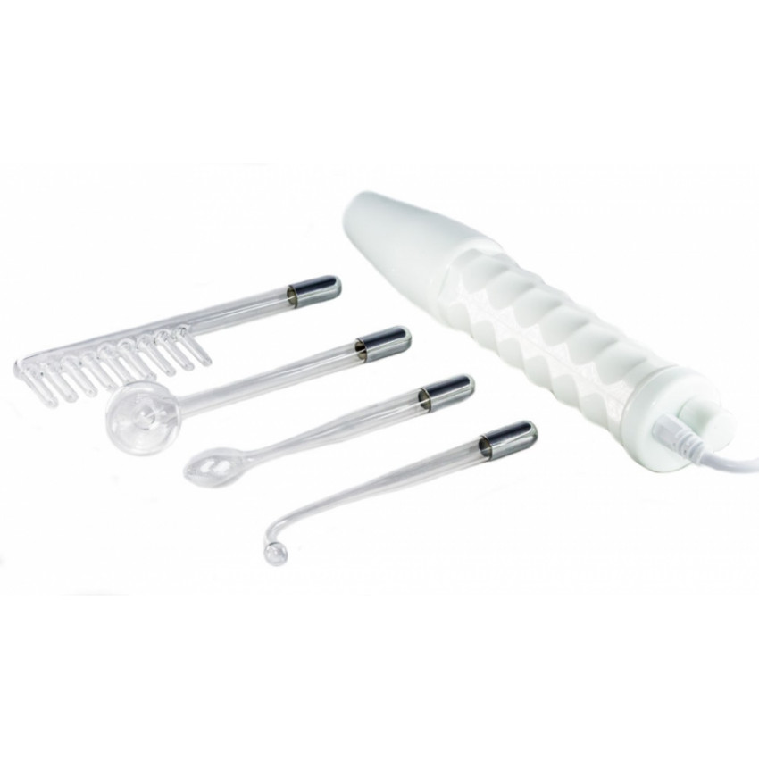 Použitie Kozmetického Ozonizéra je jednoduché a intuitívne. Prístroj je vybavený štyrmi špecializovanými koncovkami pre rôzne typy ošetrenia.