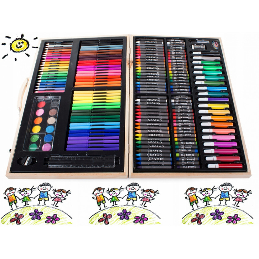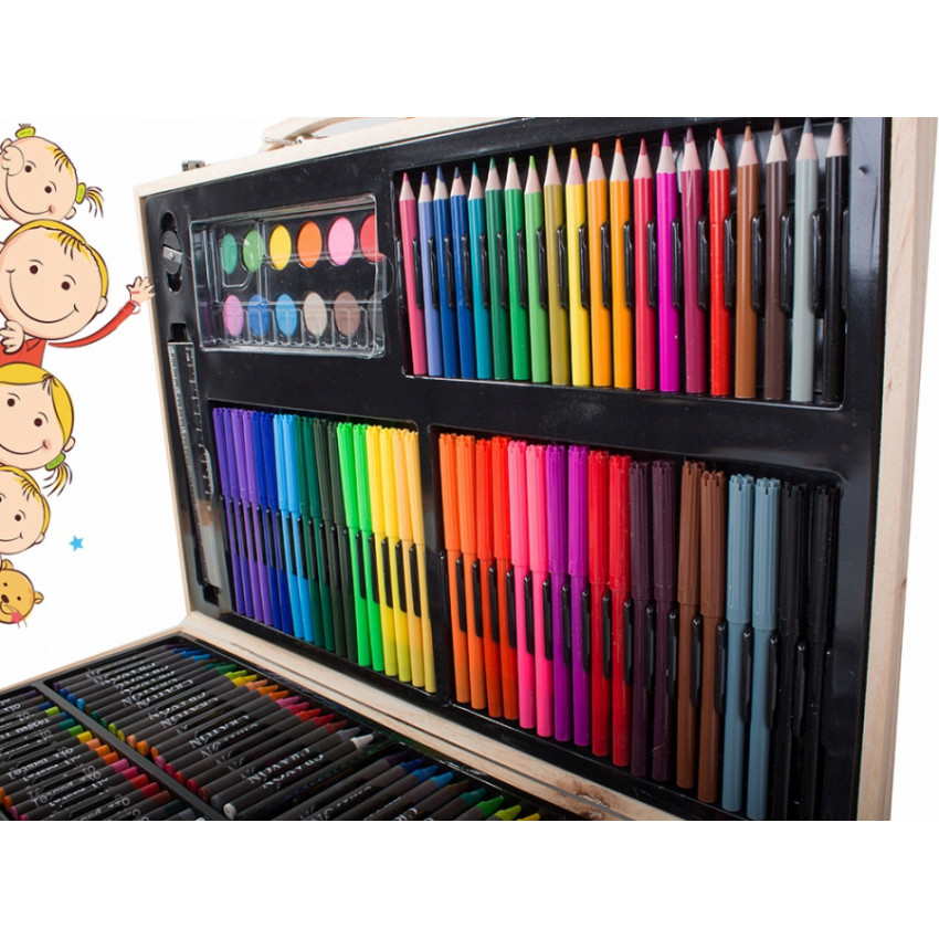 Umelecká súprava na maľovanie v drevenom kufríku – 180 ks