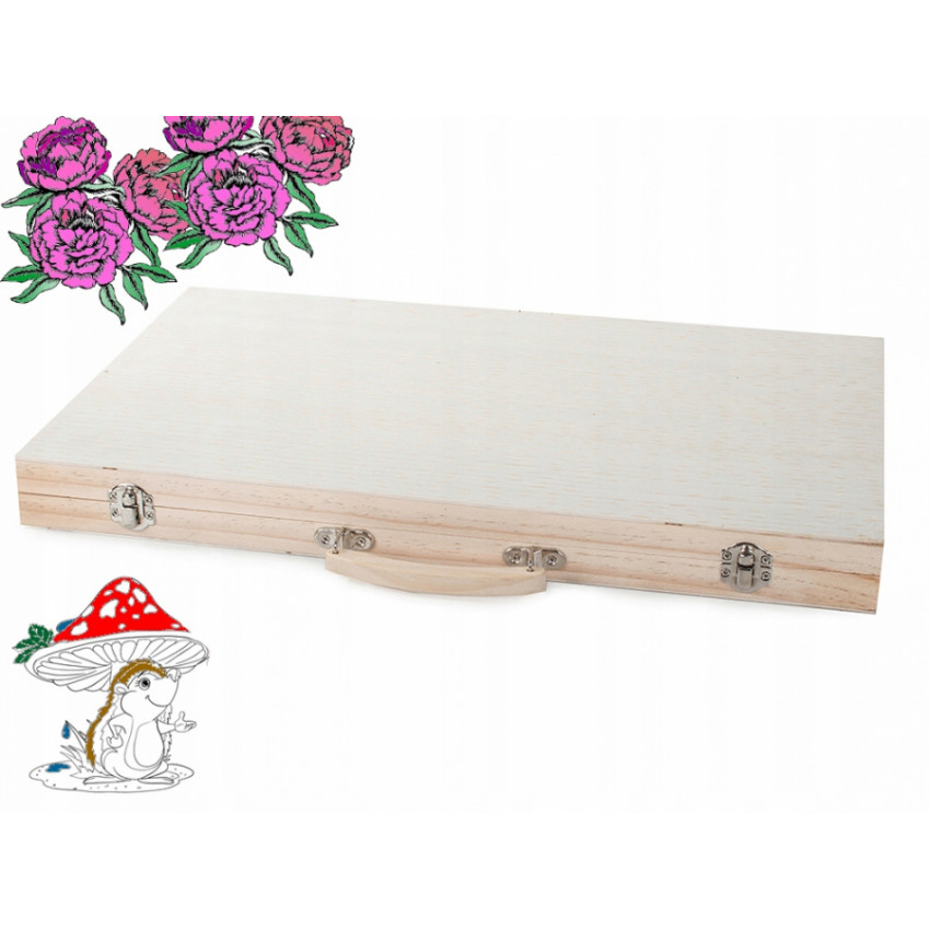Praktické a štýlové prevedenie Všetky nástroje sú prehľadne uložené v drevenom kufríku so zásuvkou, ktorý je nielen praktický, ale aj estetický. Rukoväť na prenášanie zaručuje, že si svoju umeleckú súpravu môžete vziať so sebou kamkoľvek – či už do školy, na výlet alebo k priateľom. Kufrík je vyrobený z odolného svetlohnedého dreva, ktoré dodáva celému setu elegantný vzhľad.